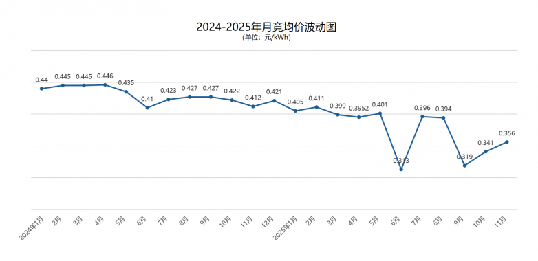 以江苏电力市场为例,自9月进入连续结算试运行以来,连续3月的月度集中竞价为0.319、0.340、0.356元/kWh,波动起伏极大。在进入连续结算试运行前,月度集中竞价浮动在 0.38-0.44 元/kWh 之间,与长协价差在 0.001-0.089 元/kWh。且2026年可能存在月度竞价与长协价格倒挂的月份,极为考验售电公司的交易能力与履约能力。