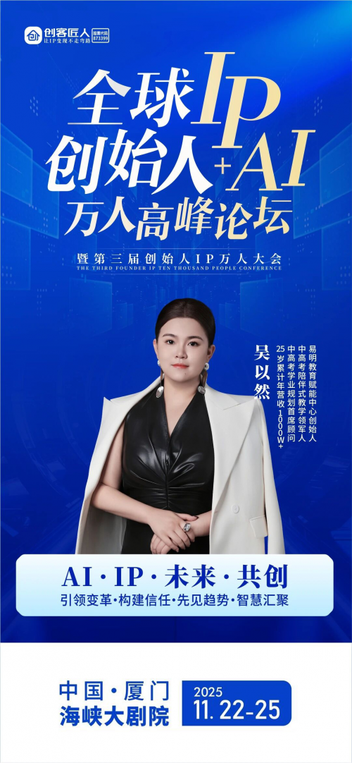 本届全球创始人IP+AI万人高峰论坛,其核心使命正是让一部分人先看到未来。吴以然的提前布局与成功实践,恰恰证明了唯有那些看清趋势并果断投入的先行者,才能把握先机,甚至引领浪潮。她的故事激励着更多创业者,不仅要关注当下的竞争,更要放眼未来的演变。