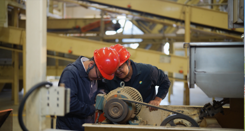 (开烤前,车间职工在检修机器)