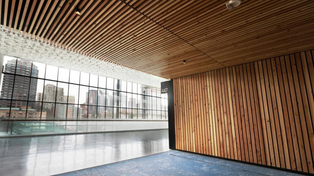 例如商场、办公楼优先考虑视觉设计感和功能性。可选择开透式、条形板或方格吊顶,兼顾美观与空调、消防管道的隐藏需求。例如国际一线金属建筑材料品牌普罗万Provano,它的一款条形吊顶板,是透光式天花板,就很适配这类空间。条形吊顶板由统一的龙骨系统配合有多种高度选择的铝质材料组成,透光条板以扣入的方法与龙骨固定。该产品设计有通透、吸音的效果,能与空调通风口以及消防喷淋配合。而且多种高度的变化、颜色的变化更凸显时尚优雅的线条。