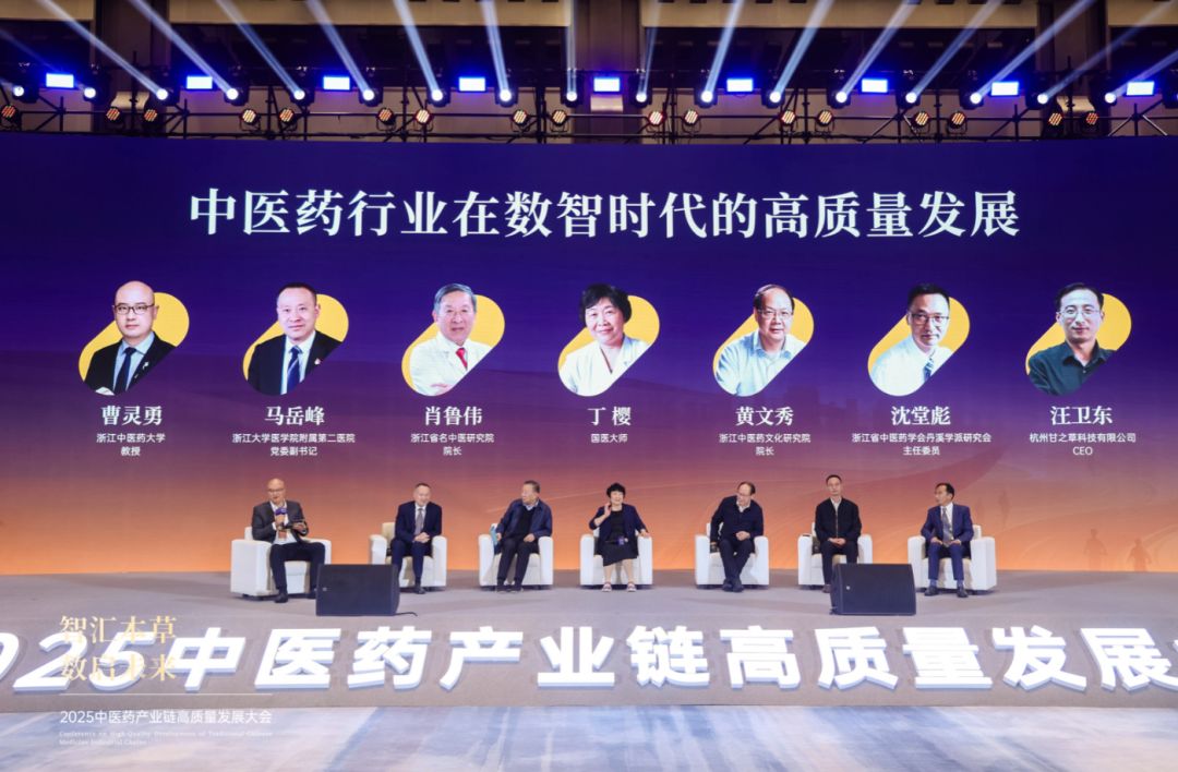 在“中医药行业在数智时代的高质量发展”圆桌对话中,国医大师丁樱、浙江中医药文化研究院院长黄文秀、浙江省名中医研究院院长肖鲁伟、浙江省中医药学会丹溪学派研究会主任委员沈堂彪、浙江大学医学院附属第二医院党委副书记马岳峰、杭州甘之草科技有限公司CEO汪卫东,浙江中医药大学曹灵勇教授从多维度碰撞思想,凝聚共识。