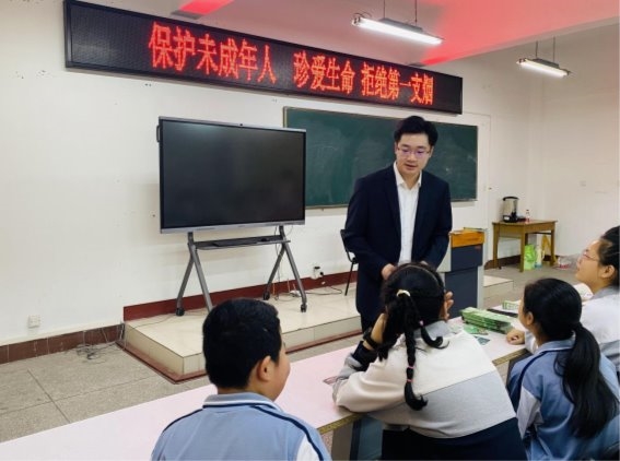 (图为青年干部吴宗霖开展“法治进校园”普法宣传)