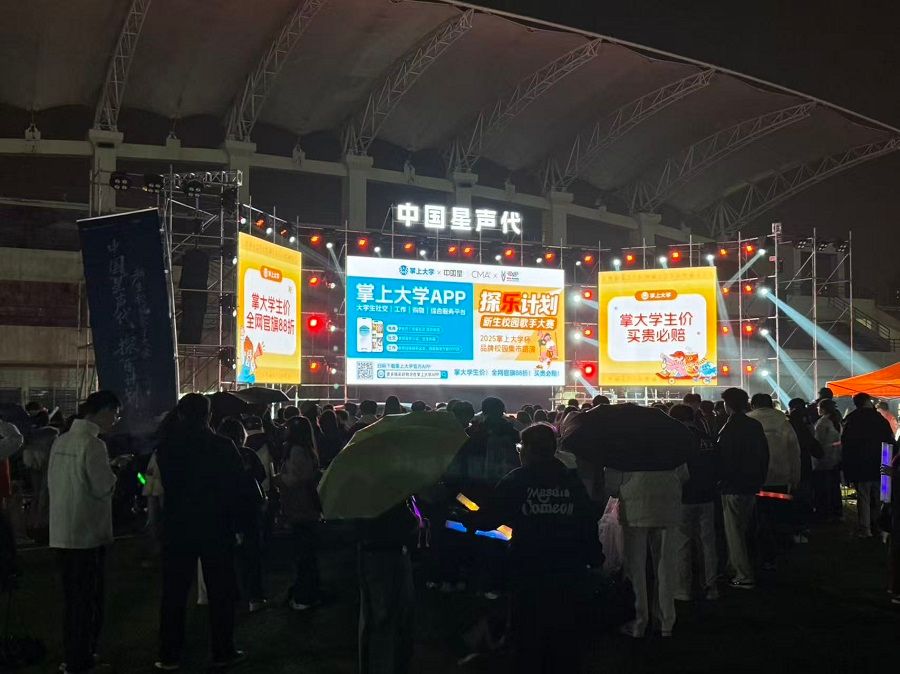 与许多仅聚焦于决赛夜黄金时段的品牌赞助不同,掌上大学此次的校园投入展现出了更长期的布局。据了解,其路演活动从当天白天便已启动,并贯穿至晚间决赛结束,形成了一次完整、持续的品牌展示。即便晚间露天赛场秋雨飘洒,其路演点位依然保持运营,这与学生撑伞观赛的场景共同构成了当晚的真实画面。