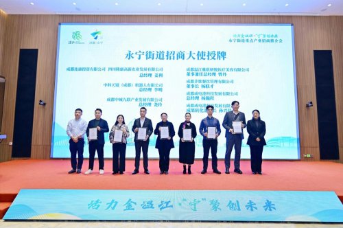 推介会上,永宁街道为首批7名招商大使授牌。据介绍,首批招商大使集结装备制造、电子信息、现代农业、现代服务业等多领域人才,他们将面向各自领域,向外推介、向内引荐,共同助力永宁发展。