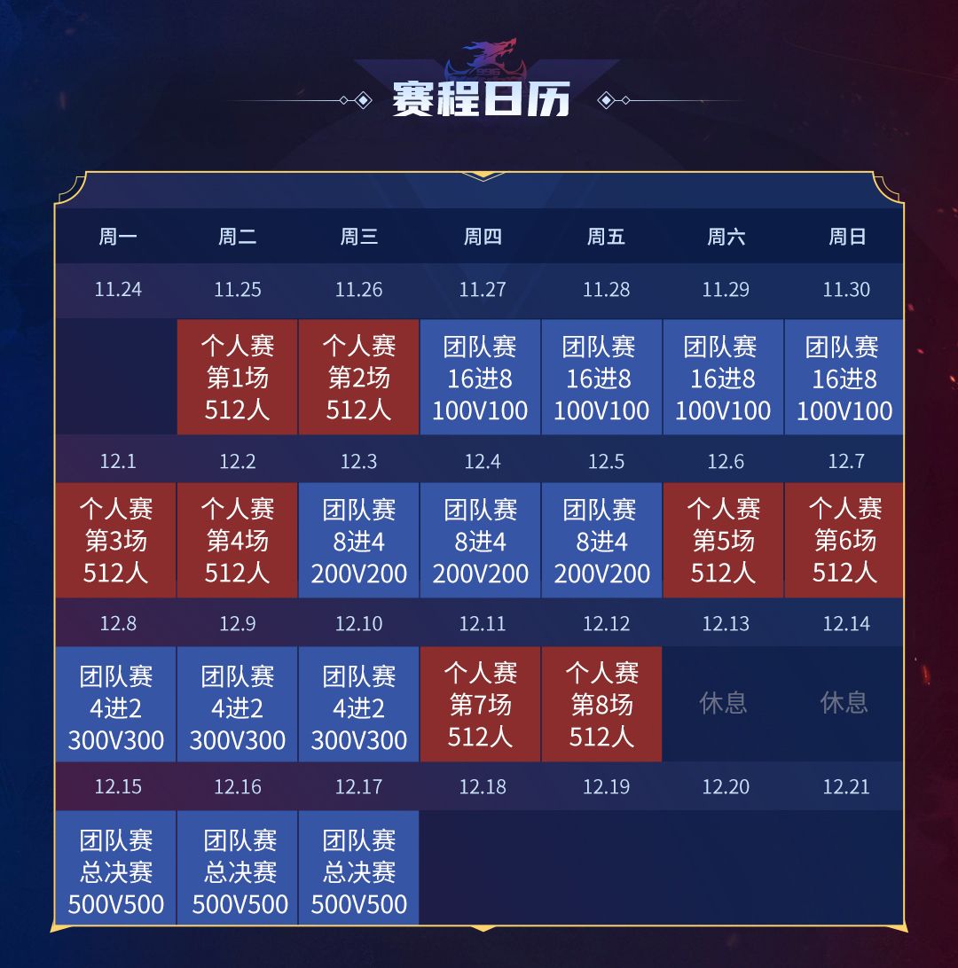 在赛程方面,团队赛和个人赛将会同步举办。其中团队赛(996传奇家族全国争霸赛)将进行13天的角逐,由入围的16支家族队伍循环对战晋级,最终决出冠亚军队伍;个人赛(兵王PK大赛)将举办8天共8场比赛,每场都有胜负决出并瓜分相应奖金,可谓打一天就有一天的收获。
