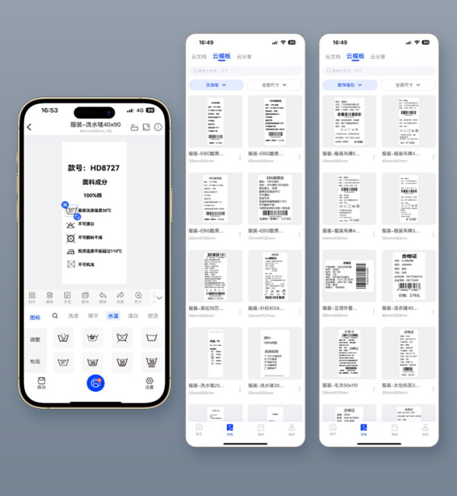 在服装公司新品上架季,不同部门的员工需要同时处理吊牌、洗水唛、合格证等不同标签编辑任务。驰腾X1 Pro支持7台手机同时蓝牙连接,多人可并行编辑标签内容,系统自动生成打印队列顺序输出,有效避免了团队在传统工作模式下因设备抢占而产生的等待与冲突。