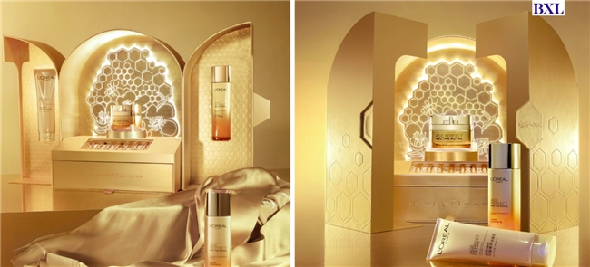 而在美妆领域,欧莱雅的高端礼盒设计也可谓惊艳——以蜂巢结构为灵感,结合宫廷式灿金配色与圆润弧面造型,不仅突显产品的高机能属性,更带来卓越的视觉与触觉体验,极大激发了消费者的购买欲望。