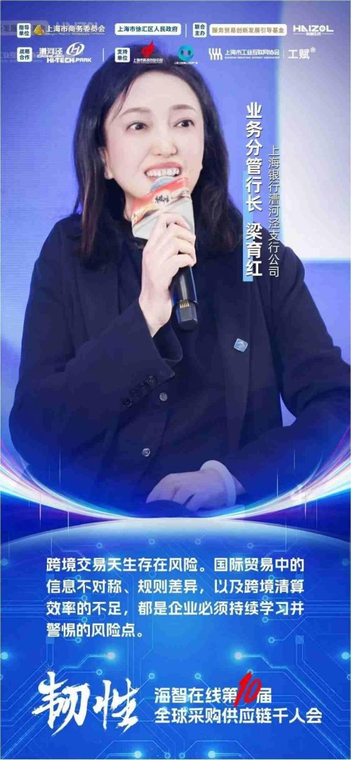 上海银行漕河泾支行公司业务分管行长梁育红从金融端分析了跨境业务在当前环境面临的三类风险:规则差异与信息不对称、跨境清算效率低、以及汇率波动。她提到,推动制造业“走出去”,需要跨境人民币、数字化结算工具以及可验证的贸易数据基础。她认为,如果能依托海智这样把订单、物流与资金整合的平台,再叠加适当担保和风控,将有望让更多中小工厂“看得见单子、也拿得到钱”。