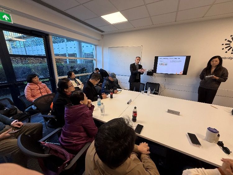 11月28日上午,研修团开展“Tour of Cambridge Science Parks and Incubator with Lecture(剑桥科技园区考察与孵化器参访及讲座)”核心环节。剑桥科技园区作为全球标杆性科技创新集群,集聚了大量高科技企业、研发机构与创业孵化平台,形成完整创新生态体系。考察期间,成员们走访园区内人工智能实验室、清洁能源研发中心及科技创业孵化器,实地调研科技成果转化流程机制,重点聚焦产学研协同创新模式构建逻辑。
