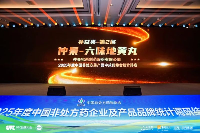 仲景六味地黄丸荣获2025年度中国非处方药产品中成药综合统计排名“补益类”第二名!