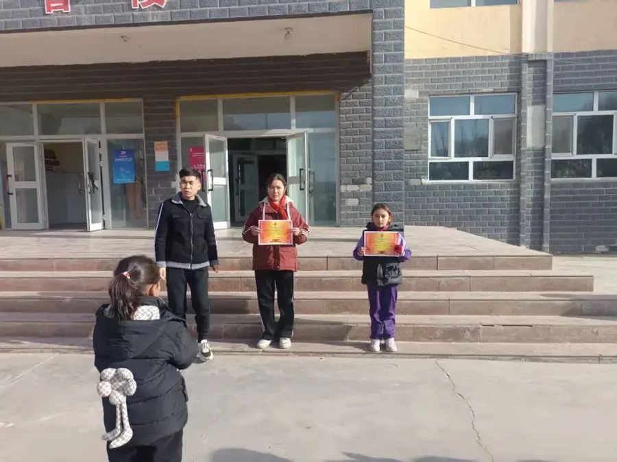 颁奖环节结束后,全体获奖学生与校领导在教学楼前合影留念,记录下这一光荣而难忘的时刻。阳光洒在孩子们灿烂的笑脸上,也照亮了他们未来的求学之路。此次“育杰奖学金”发放仪式的圆满举行,不仅是对优秀学生的肯定与鼓励,更是对全校学生的激励与鞭策,为萨依巴格乡小学良好学风的建设注入了新的动力。