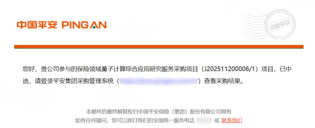 2025年12月,中国平安保险(集团)股份有限公司发布保险领域量子计算综合应用研究服务采购项目中选通知书。通知书上显示,北京玻色量子科技有限公司(以下简称“玻色量子”)成功中标中国平安财产保险股份有限公司保险领域量子计算综合应用研究服务采购项目。
