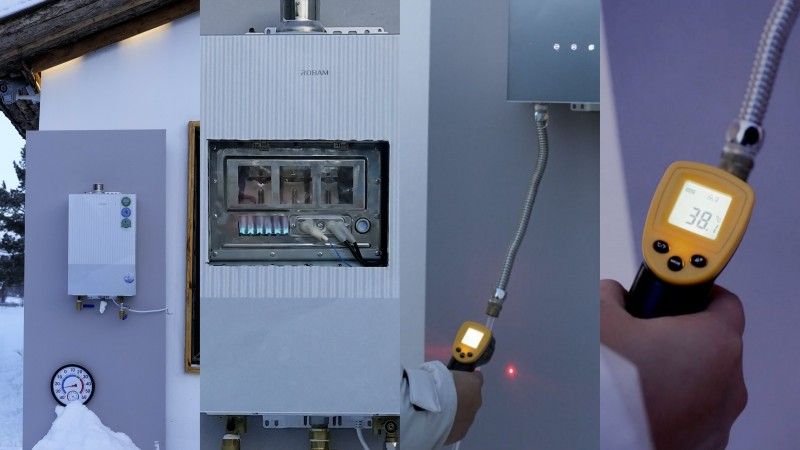 在最低温度-35℃的漠河户外,从19:00-7:00冰冻12小时后,立刻通气通水启动,老板AI恒温燃气热水器HD772-16依旧抗住极寒冷冻成功点火运行加热水温,输出恒温热水。普通产品因结构不防冻、材质不可靠等因素,会出现点火失败或零件冻坏漏水等现象。