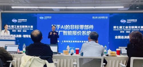 在决赛答辩环节,海智在线副总裁刘海涛对平台的AI工具进行了系统讲解。海智在线依托供给侧与需求侧两大数据底座,将工厂的加工能力、工艺、设备等供给要素,以及图纸与采购订单等需求信息进行数字化、标签化与标准化沉淀,以“数据+AI”的方式,缓解非标零部件交易中普遍存在的匹配难、报价难、协同成本高等痛点,提升供应链整体效率。