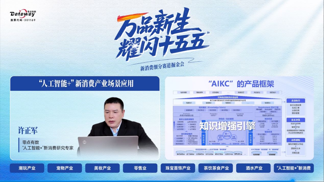 “人工智能+”新消费研究专家许正军强调,生成式AI大模型正从需求侧、供给侧及供应链三大层面重构新消费产业逻辑。在需求侧,AI实现全域洞察,精准解读情感与文化;在供给侧,AI实现产品反向定制与服务模式创新;在产业链侧,AI构建柔性协同的智能网络。然而,当前广泛应用的AIGC技术主要依托历史静态数据生成内容,在高度动态变化的现实业务环境中,其决策支持能力存在局限。为此,零点有数提出“AIKC”,即“基于动态与过程知识的内容生成”,标志着对AIGC能力的重要演进与拓展。同时,他建议企业加快构建数据能力,定制行业模型,深耕场景落地;政府则需加强技术创新支持与数据安全治理。
