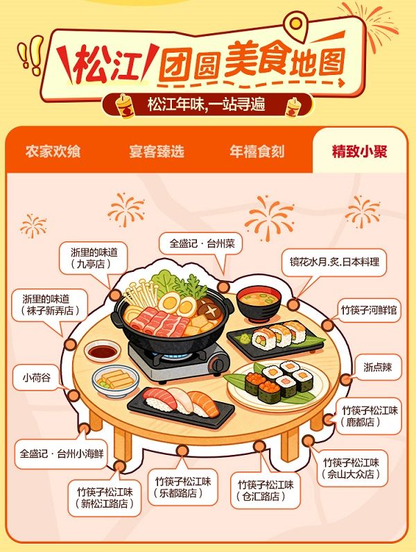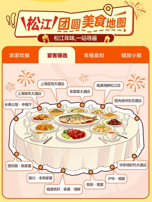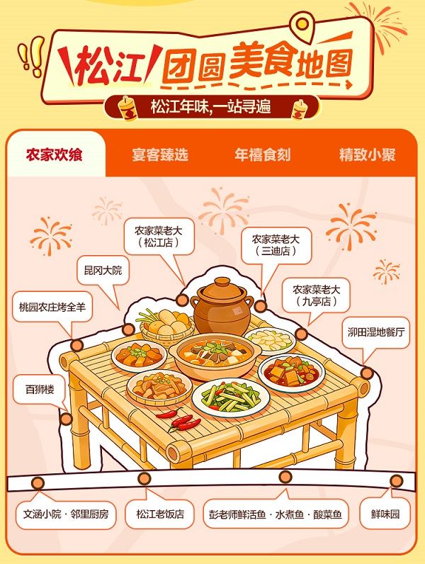 此次美食节是“松江食光”美食嘉年华系列活动的延续,旨在说好“上海之根”故事,带动餐饮等生活服务消费。活动期间,美团、大众点评平台特别搭建松江年夜饭专属预定频道,整合区内35家品牌、44家门店,推出多价位、多特色的年夜饭、团圆餐,并带来“预定立减”“赠特色菜品”“打卡晒单返现”等福利,吸引市民提前锁定团圆美味,助力餐饮业商家声销并进,打造松江餐饮与城市生活方式新标杆。专属频道还推出“松江团圆美食地图”,带来农家欢飨、宴客臻选、年禧食刻、精致小聚等美食板块,汇聚松江区老字号餐饮、非遗美食店、网红特色餐厅等点位,随附详细菜品推荐与消费指引,引导市民深度探索松江味蕾记忆。