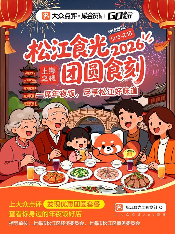 近日,由上海市松江区经济委员会(商务委)组织的“松江食光·团圆食刻”美食节正式上线启动。美食节依托美团、大众点评平台搭建松江年夜饭、团圆餐专属预定频道,结合跨年迎新主题特色,激活区域餐饮“年味”消费活力。即日起至2月15日,消费者前往大众点评搜索“松江食光团圆食刻”即可直达会场,查看松江团圆美食地图,预定团圆餐、年夜饭,享受优惠团餐等福利。