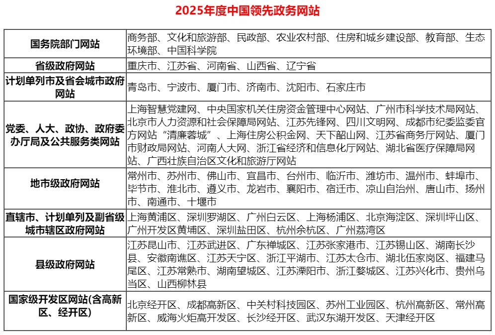 第三系列:2025年度中国领先政务网站