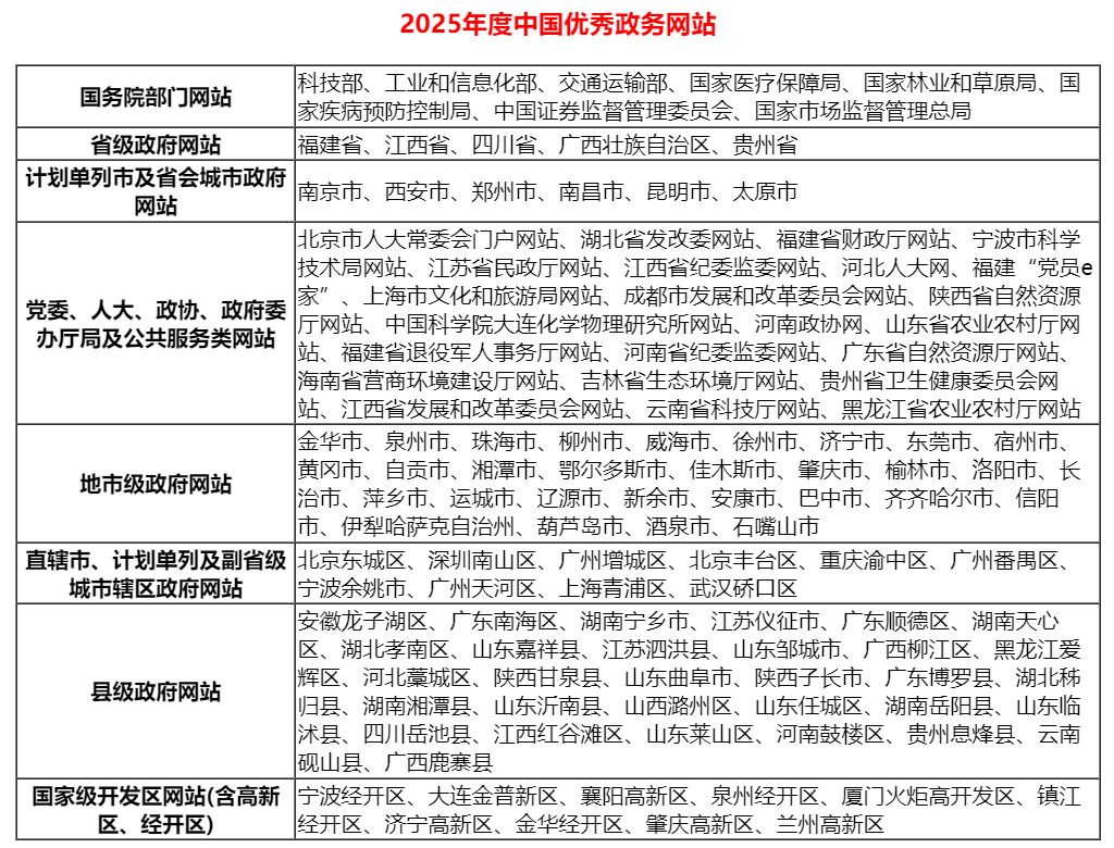 第四系列:2025年度中国优秀政务网站