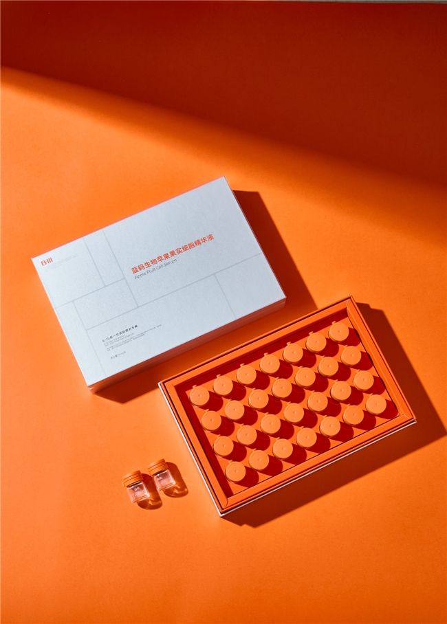 蓝码生物 B-III系列的第二款产品,蓝码生物苹果果实细胞精华液,是一款高性能精华,其核心成分源自瑞士稀世苹果Uttwiler Spätlauber的干细胞。这种苹果以超长的保鲜期与旺盛的生命力而闻名,无需冷藏即可保鲜数月,是高端抗衰老护肤产品的理想原料。