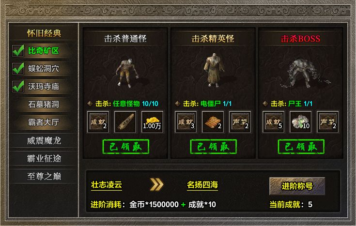 “屠魔称号”玩法带领玩家跟随指引清图挑战,即可获得成就点数与丰厚奖励。提升称号不仅能增强属性,更直接增加“对怪固伤与增伤”,是新地图开荒的效率保证。