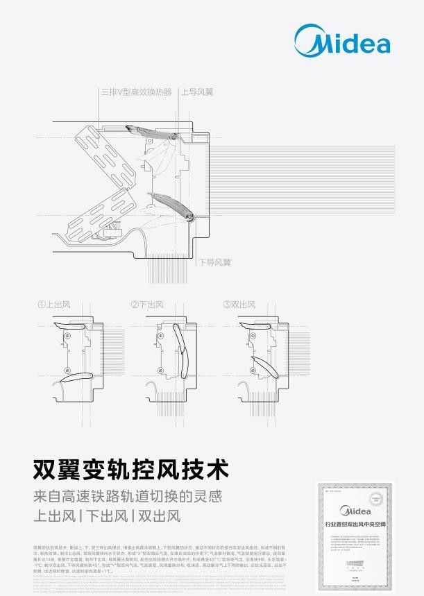 面对中央空调领域长期存在的设计局限,行业痛点亟待破解。传统中央空调因风向不可调,导致冷热不均;同时在大空间适配、避免直吹等场景中表现乏力,严重影响用户体验。基于此,美的空调以破局者之姿挺进技术“无人区”,率先推出行业首创的双出风中央空调,一举攻克传统设计桎梏,不仅重新定义舒适标准,更树立起全新的性能标杆。