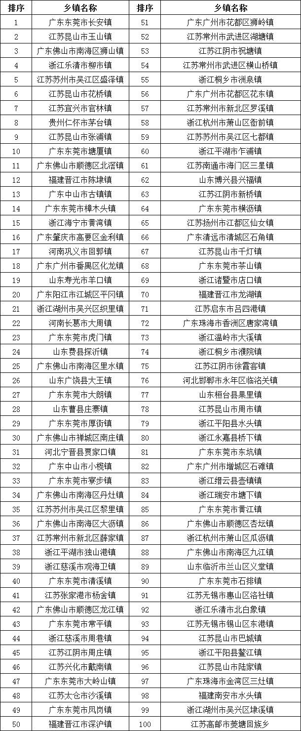 评价结果显示,广东东莞市长安镇位居天和2025全国产业集群百强乡镇第一。排名前十位的分别是:广东东莞市长安镇、江苏昆山市玉山镇、广东佛山市南海区狮山镇、浙江乐清市柳市镇、江苏苏州市吴江区盛泽镇、江苏昆山市花桥镇、江苏宜兴市官林镇、贵州仁怀市茅台镇、江苏昆山市张浦镇、广东东莞市塘厦镇。