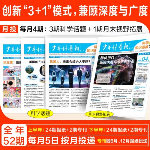 “老牌”基因与“新势力”创新,让《少年科普报》成为孩子科学启蒙黄金载体。作为青少年科普报品类的开创者,以及现象级爆款产品《大语文知识画报》的延伸品类,《少年科普报》成为始终坚守“强大科普理念,普及科学,开发智力,开展活动,培养综合型人才”的宗旨,通过科学教育的独特魅力,实现课内教育与课外阅读、实践活动的深度融合,助力培养新一代学生“思维活跃、想象丰富、多才多艺、实用创新”的综合素质。