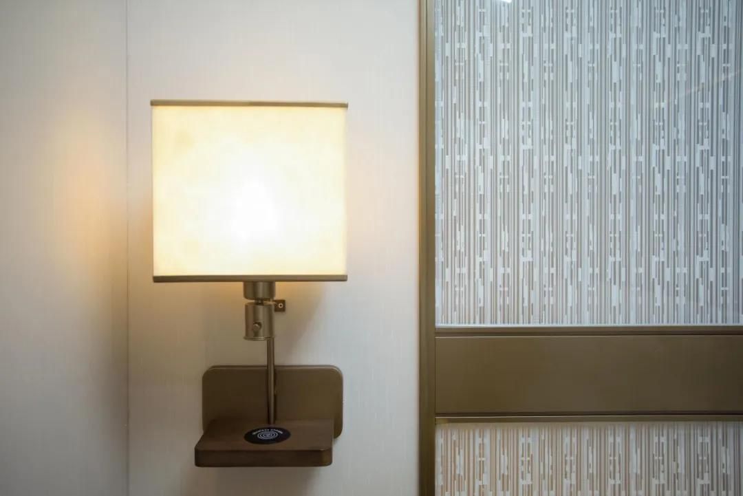 功能配置显贴心:在免费洗衣渐成标配的当下,5.5产品进一步在客房内提供了具备杀菌功能的烘干机(选配),精准回应了后疫情时代消费者对卫生的高度关切。针对普遍的“电量焦虑”,产品巧妙地在床侧壁灯中融入无线快充功能,兼顾便捷性与情绪价值。