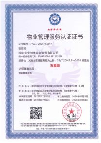 此次获证,是天安运营管理底蕴的又一次升华。此前,公司已先后成功通过了多项重量级权威认证,包括ISO 9001(质量)、ISO 14001(环境)、ISO 45001(职业健康安全)、GB/T 20647.9-2006(物业管理服务)、SGS认证(深圳标准认证)、ISO 27001(信息安全管理体系认证)、ISO 50001(能源管理体系认证)、GB/T 31950(诚信管理体系认证)。