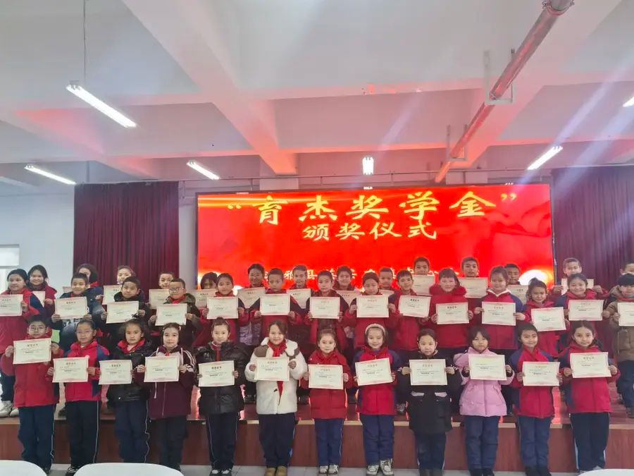 (英买力镇中心小学“育杰奖学金”中期表彰仪式)