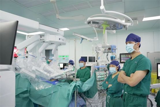 上午9点,在手术室内,在前海人寿广州总医院院长汪建平教授的指导下,一台由前海人寿广州总医院肿瘤综合治疗科主任、原中山大学附属第五医院胃肠外科主任窦若虚亲自主刀,多孔腔镜手术机器人化身“精准外科助手”的直肠癌根治术(NOSES)正在进行中。