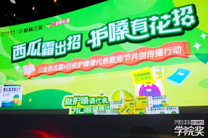 当学院奖秋季赛启动仪式的号角在Y2Y品牌年轻节响起,三金西瓜霜面向全国高校发起创意征集令,以“做护嗓课代表,为口喉健康出招--口喉健康, 常备三金西瓜霜” 为主题,携手旗下三大明星单品“西瓜霜润喉片(纸盒)”、“西瓜霜润喉片(铁盒)”、“ 西瓜霜清咽含片”创意发题,特设平面广告、短视频、策划文案、综合设计四大赛道,号召Z世代化身“护嗓课代表”精彩“出招”,用创意方案破解口喉健康问题,守护青春声线,让健康与灵感同频共振,打造属于年轻人的健康宣言。