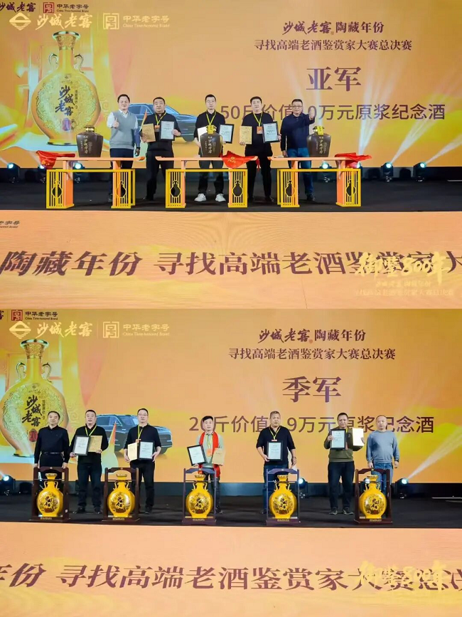 随后,晚宴的颁奖环节将气氛推向高潮,5名季军、3名亚军与总冠军依次登台受奖。他们的荣誉与沙城老窖万吨地下酒库中珍藏的老酒一脉相承,每一坛都源自岁月的积淀。获奖者在封条上签名,以此见证一份跨越时间的承诺。