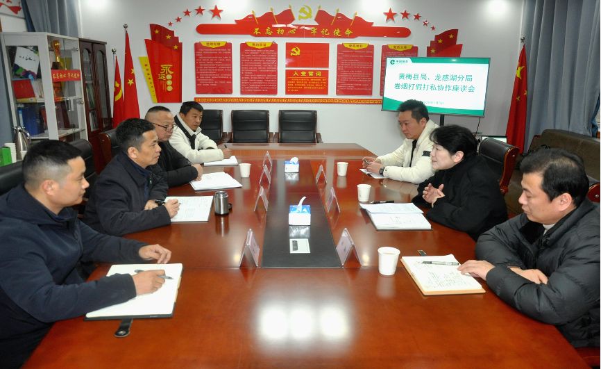 图为与相邻的黄梅县局开展打假打私协作座谈会