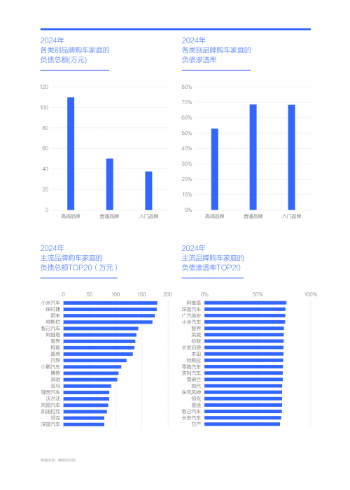 新锐高端品牌购车家庭的负债总额与渗透率双双跻身主流品牌TOP20前列,这一群体面临更高的“中产陷阱”风险。
