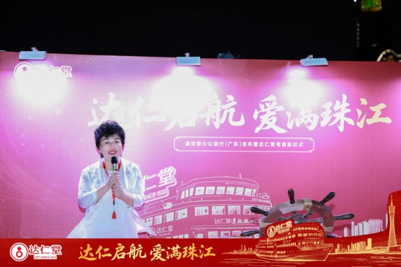 天津医药集团总裁、津药达仁堂集团党委书记、董事长王磊女士在致辞中表示:“达仁堂号”游船将承载双重使命启航: 首先承载着文化传承的使命。让中医药智慧以更亲切、更生动的方式贴近大众,让更多人能够认识中医药、认可中医药、爱上中医药;其次,它承载着公益传播的使命。为此我们联合腾讯公益、京东健康、中国红十字会、120急救中心等力量发动了速效救心公益行。号召随身携带速效救心丸,人人都是流动救助站,佩戴速效救心丸,关键时刻救人救己。