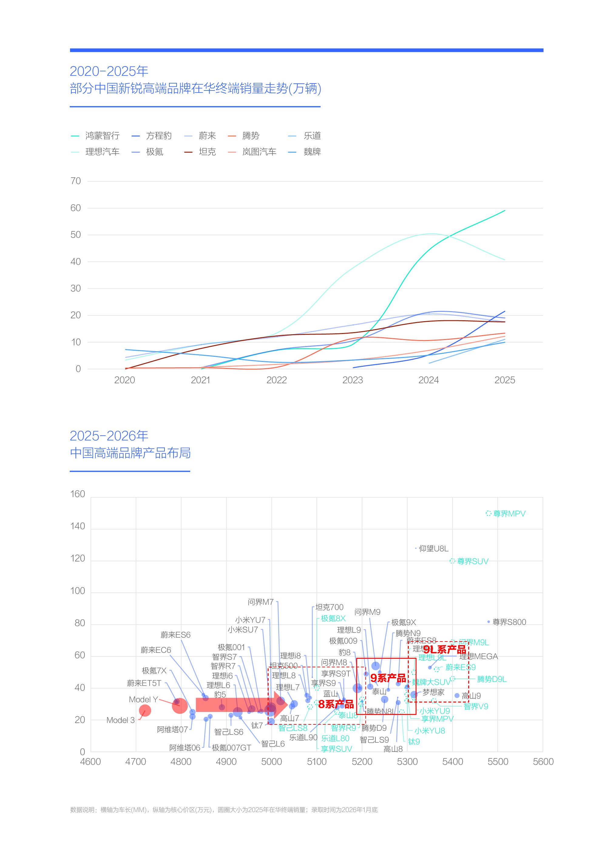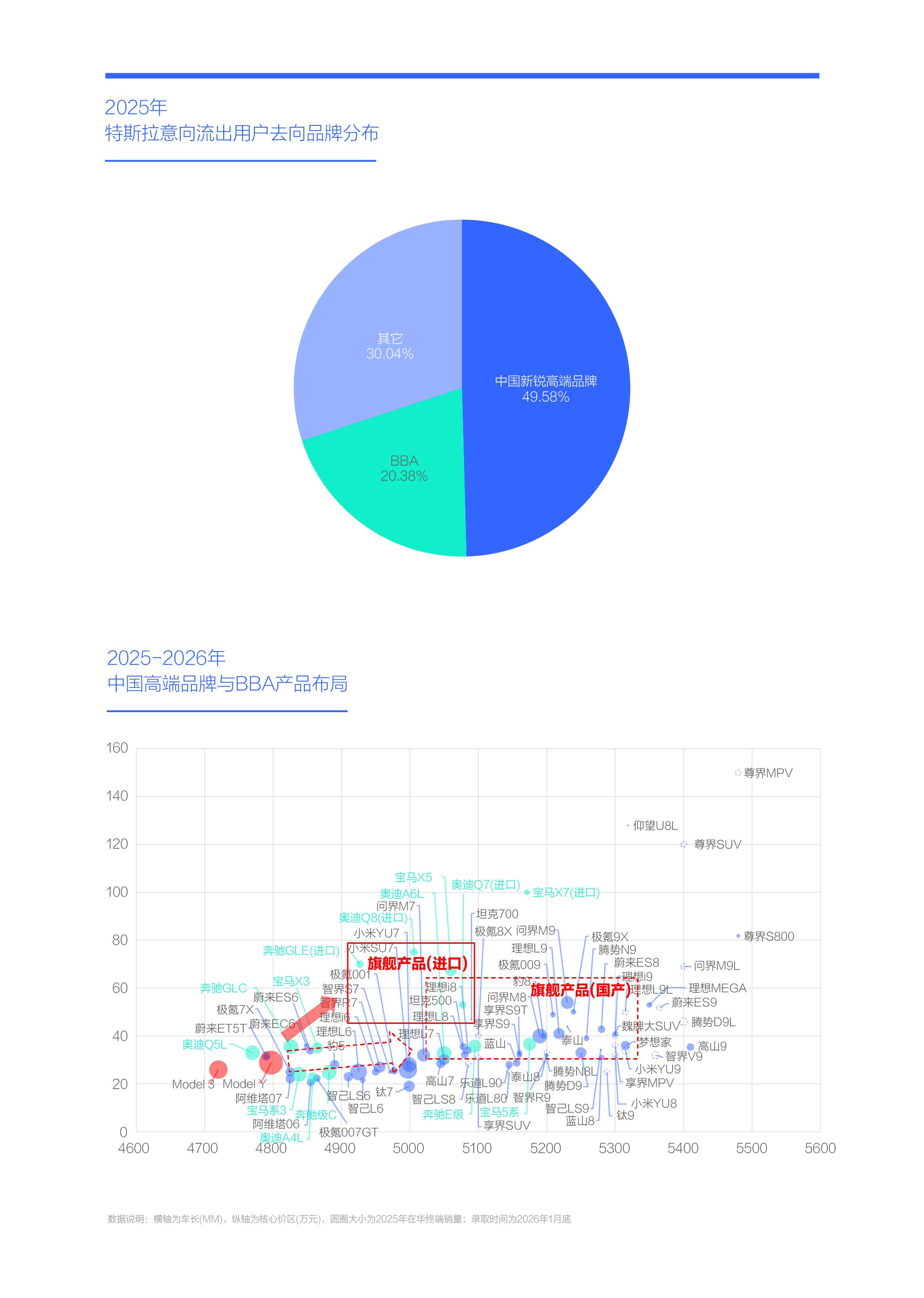 2026年,基于8系、9L系等新产品,中国新锐高端品牌会持续强化大车布局与优化产品定价,有望吸引更多特斯拉再购用户