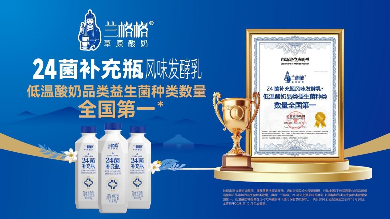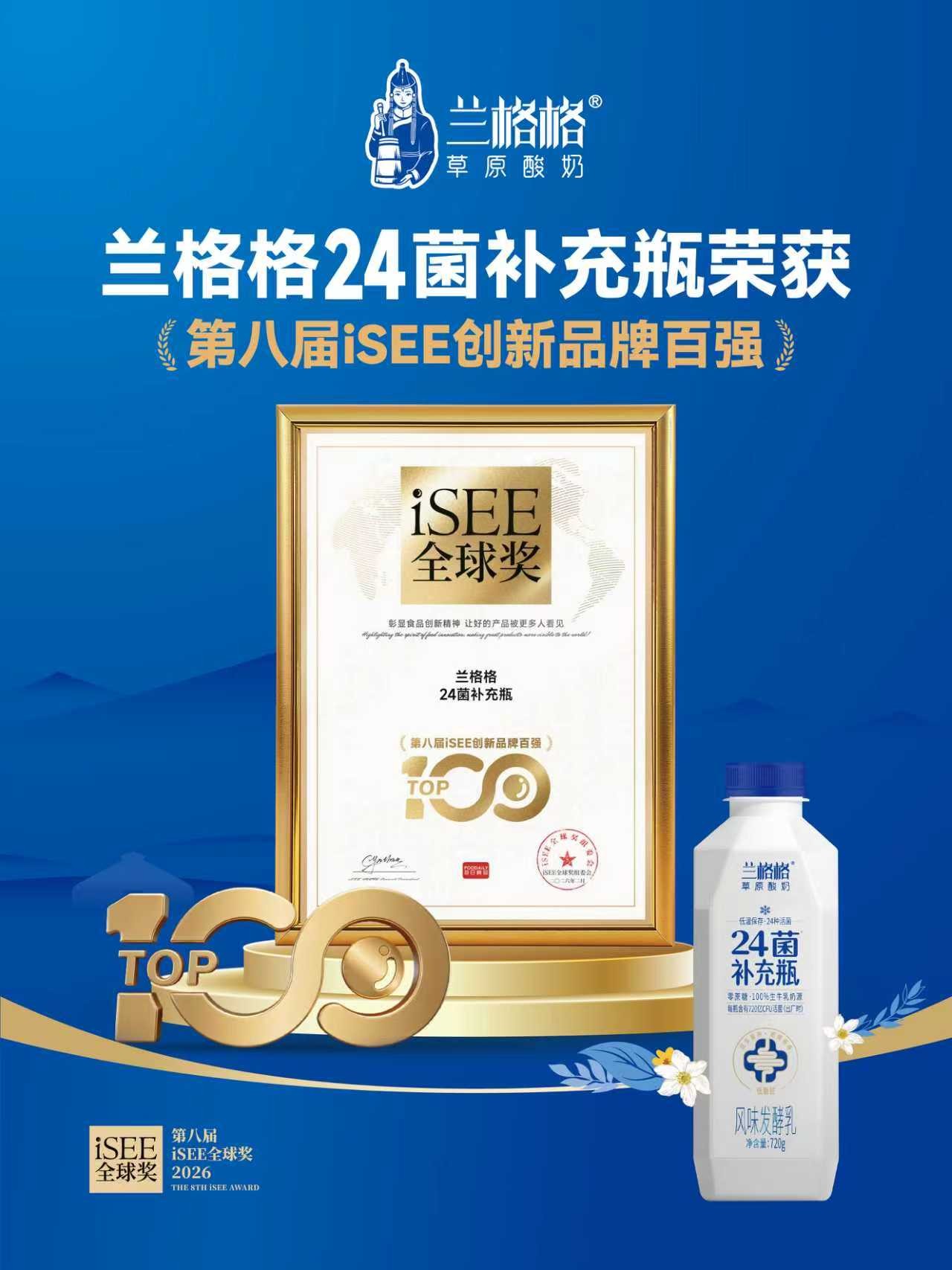 2026年2月5日,被誉为“食品界诺贝尔”的第八届iSEE全球奖正式揭晓【iSEE 创新品牌百强】名单,国内草原酸奶领军品牌兰格格凭借旗下明星新品——24菌补充瓶,从全球 5688个申报案例中突围,成功入选乳品类创新百强,其“以用户健康需求为核心”的创新实践,不仅斩获行业权威认可,更成为食品健康化功能化趋势下的标杆范例。