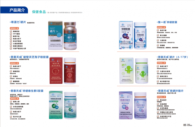 2.保健食品:锌硒维生素E片、铁硒叶酸片、锌硒胶囊、硒片等