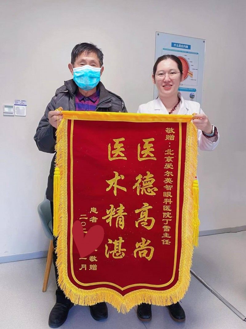 近日,北京爱尔英智眼科医院白内障科主任丁雪收到了一面锦旗,送来锦旗的李先生笑容满面,与第一次见面时的样子判若两人。