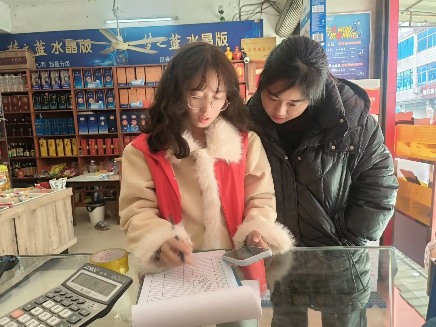 (图为节后客户经理为零售户指导经营,冯南英摄)