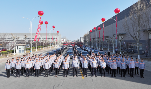 在热烈的掌声中,全体市场人员有序登车,运载英轩装载机、拖拉机、叉车的车队也缓缓驶出厂区,奔赴全国市场,标志着新一轮市场开拓全面展开。