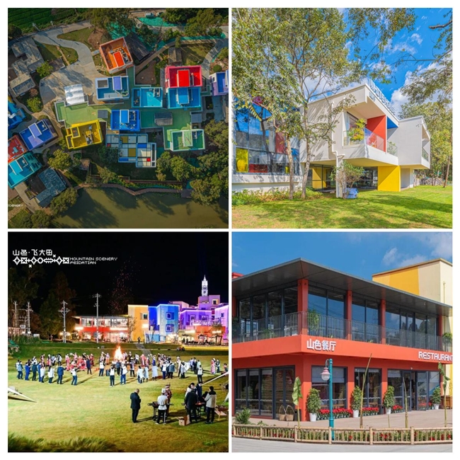 如今的山色·飞大田,已成为集精品酒店、民俗商街、非遗体验、艺术中心、音乐酒吧于一体的乡村振兴+田园旅居综合体,并成功入选云南省旅居典型案例,被评为国家AAA级旅游景区。