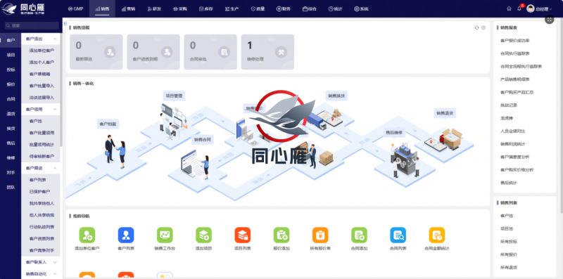 如果说拓客是销售工作的起点,那么订单转化就是销售工作的核心目标。医疗器械企业的订单转化流程复杂,涉及报价、合同签订、合规审核、库存匹配、物流配送、货款回收等多个环节,任何一个环节的低效或失误,都可能导致订单流失。同心雁S-ERP通过销售全数据闭环,将数据联动贯穿于订单转化全链条,实现各环节高效协同,大幅缩短销售周期、提升成交效率。