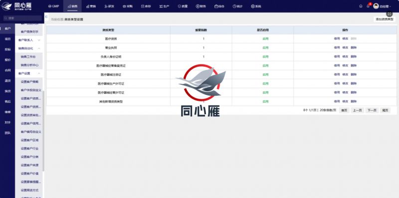 在客户领用阶段,同心雁S-ERP提供专业化、合规化的客户管理能力。系统支持客户资质列表一键查验,销售人员在领用客户前即可完成资质完整性、有效性核对,从源头降低超范围合作、资质过期等合规风险。同时,系统完整记录客户行动轨迹,从首次咨询、多次沟通、方案查看到报价反馈,全流程行为自动留痕,让销售人员清晰掌握客户所处阶段与真实意向,不再凭经验猜测、盲目跟进。