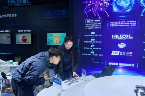 以现场展台上展示的机器狗为例,海智在线负责构筑其“机械骨架”,通过AI等智能化工具快速解析图纸并精准匹配柔性加工网络,支撑复杂结构的高效落地;云汉芯城则负责打造其“电子大脑”,极速解析庞杂BOM与供应链网络,为机电装备构建稳定可靠的电控神经中枢。依托双平台AI算力引擎,两大供应链平台实现深度协同,打通了定制化结构件制造与电子元器件供应链之间的壁垒,交付高度确定的机电一体化实体。
