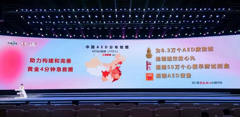 不仅如此,达仁堂在全国30个城市打造1万家药店公益救助站,在培训药店工作人员掌握基础急救技能的基础上,为市民提供24小时速效救心丸应急取用服务。同时,达仁堂向全国8.3万个AED救助站捐赠速效救心丸,形成“AED设备+急救药品”的协同救助组合,提供24小时急救支持。