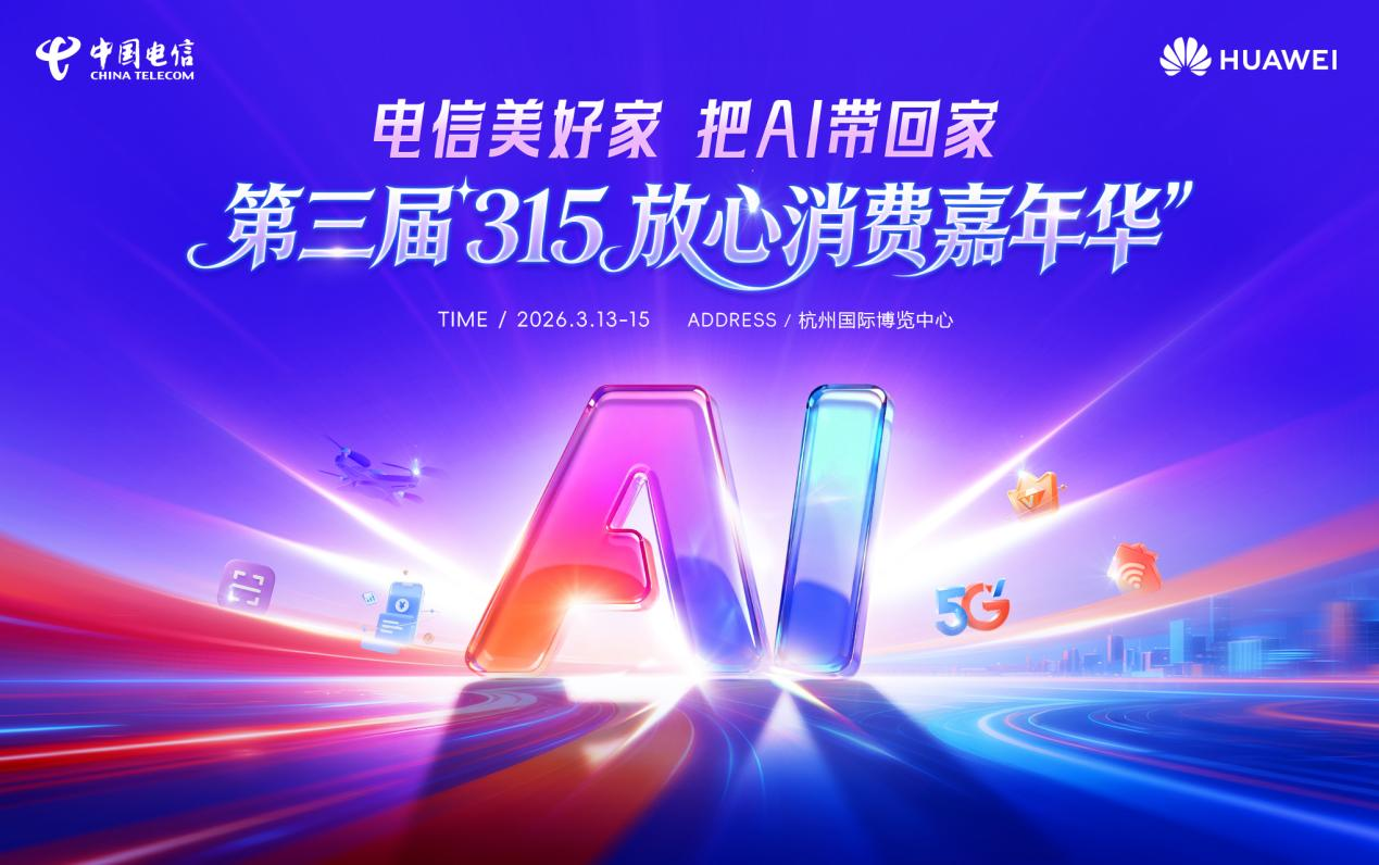 3月13日,第三届“3·15放心消费嘉年华”公益活动在杭州拉开帷幕。中国电信浙江公司携手生态合作伙伴华为公司焕新首发天翼智盒、天翼智屏两款家庭AI智慧产品,并集中展示了基于天翼视联AI能力的四个“一键”核心应用,让消费者直观感受数智创新带来的全新体验。