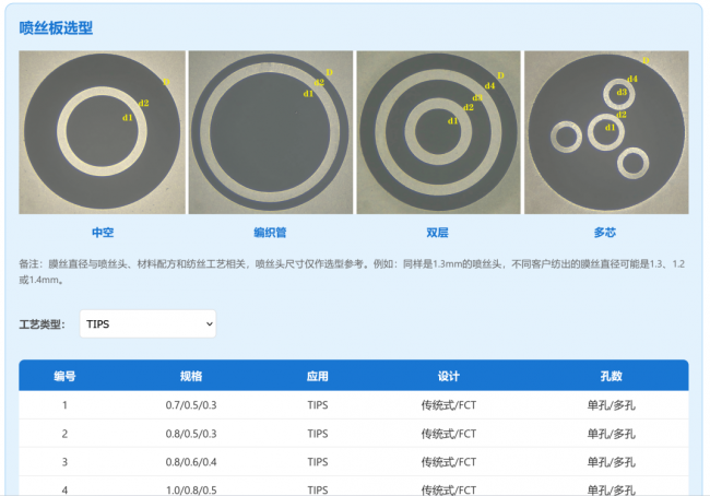 喷丝头选型阶段:面对不同膜工艺,研发人员可通过内置规格库,对比不同喷丝头类型的技术参数,为方案选型或方向预研提供参考。